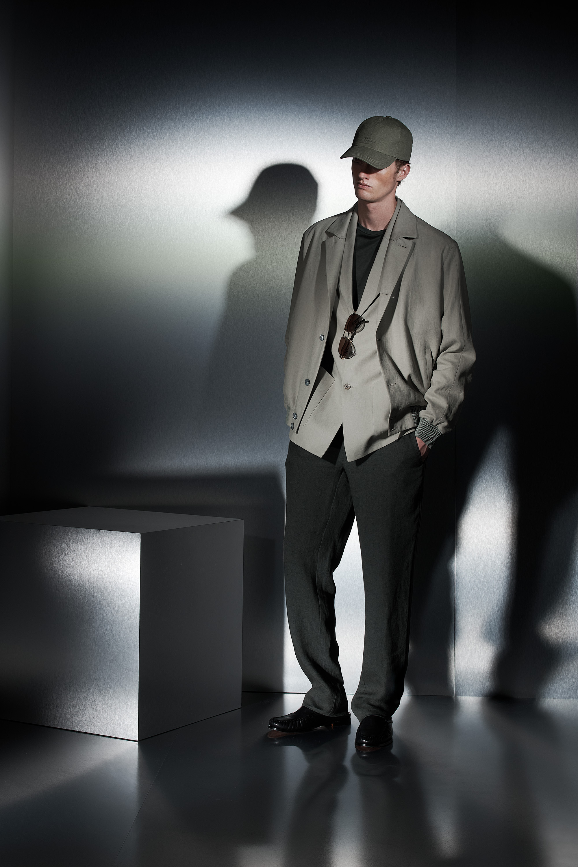 The garments in the collection embody this duality, blending essential silhouettes with details that recall the charm of tradition, as if time itself had left its mark upon them. Fabrics that evoke surfaces altered by the passage of time are updated through sharp cuts and precise proportions.