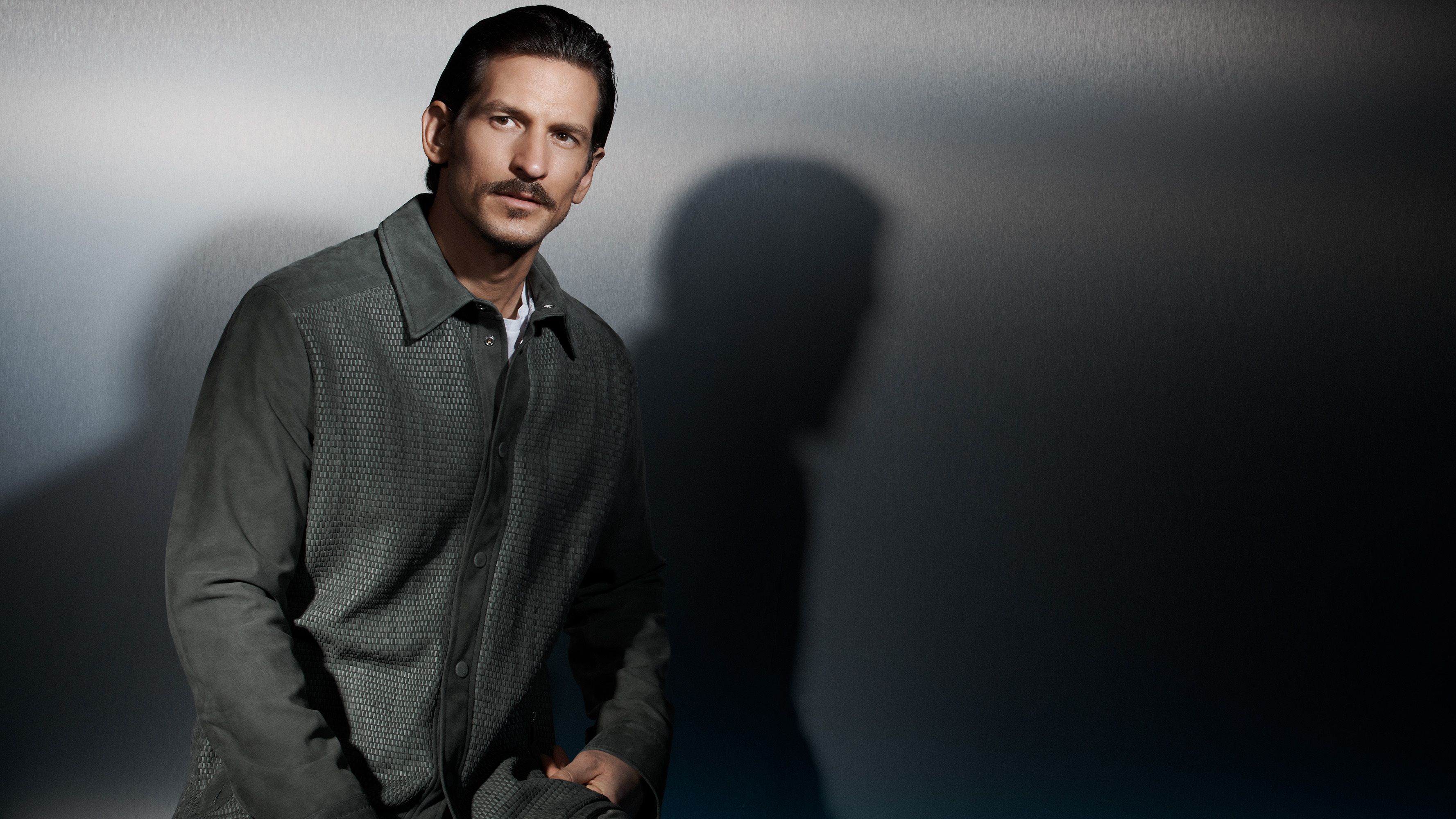 In technical wool, grained calfskin details, wool body lining, cashmere hood lining -