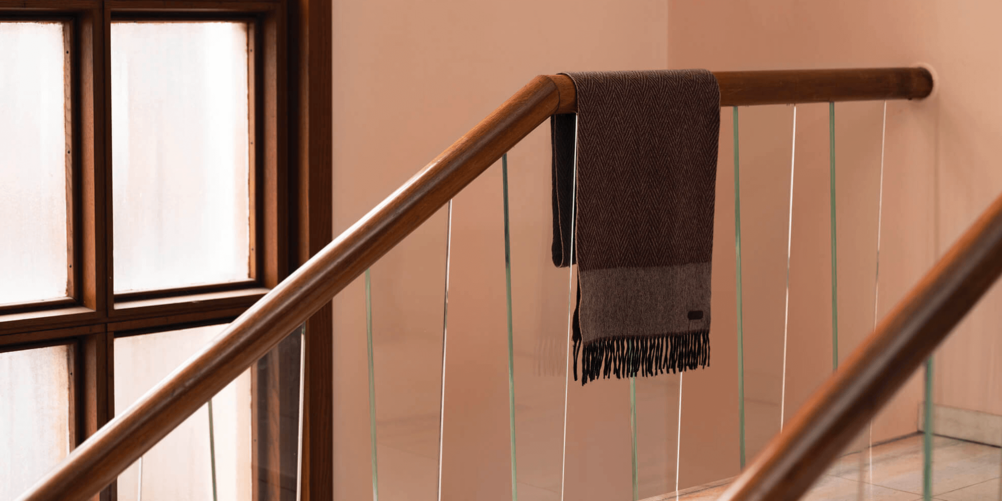 Brown and black Oniro fringed scarf, "Griffon Losanges" pattern In cashmere, lambskin details, silk lining